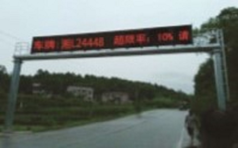使用国内常用的LED可变情报板,该情报板安装在前端高速称重系统后方约200米位置,通过情报板上显示车辆的车牌、轴数、重量等信息来告知 超限司机已经超重。